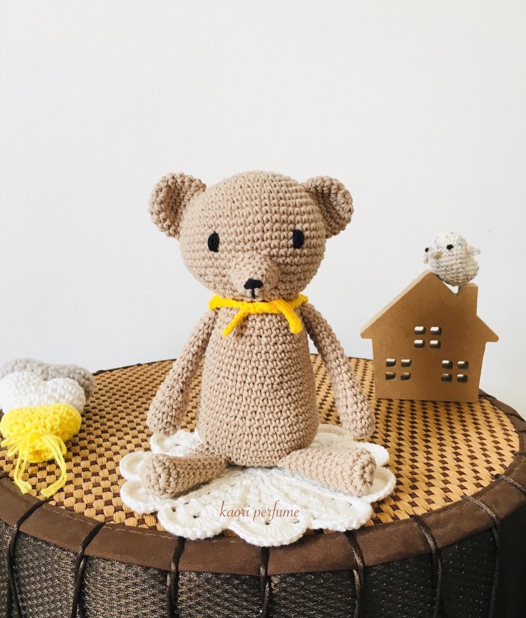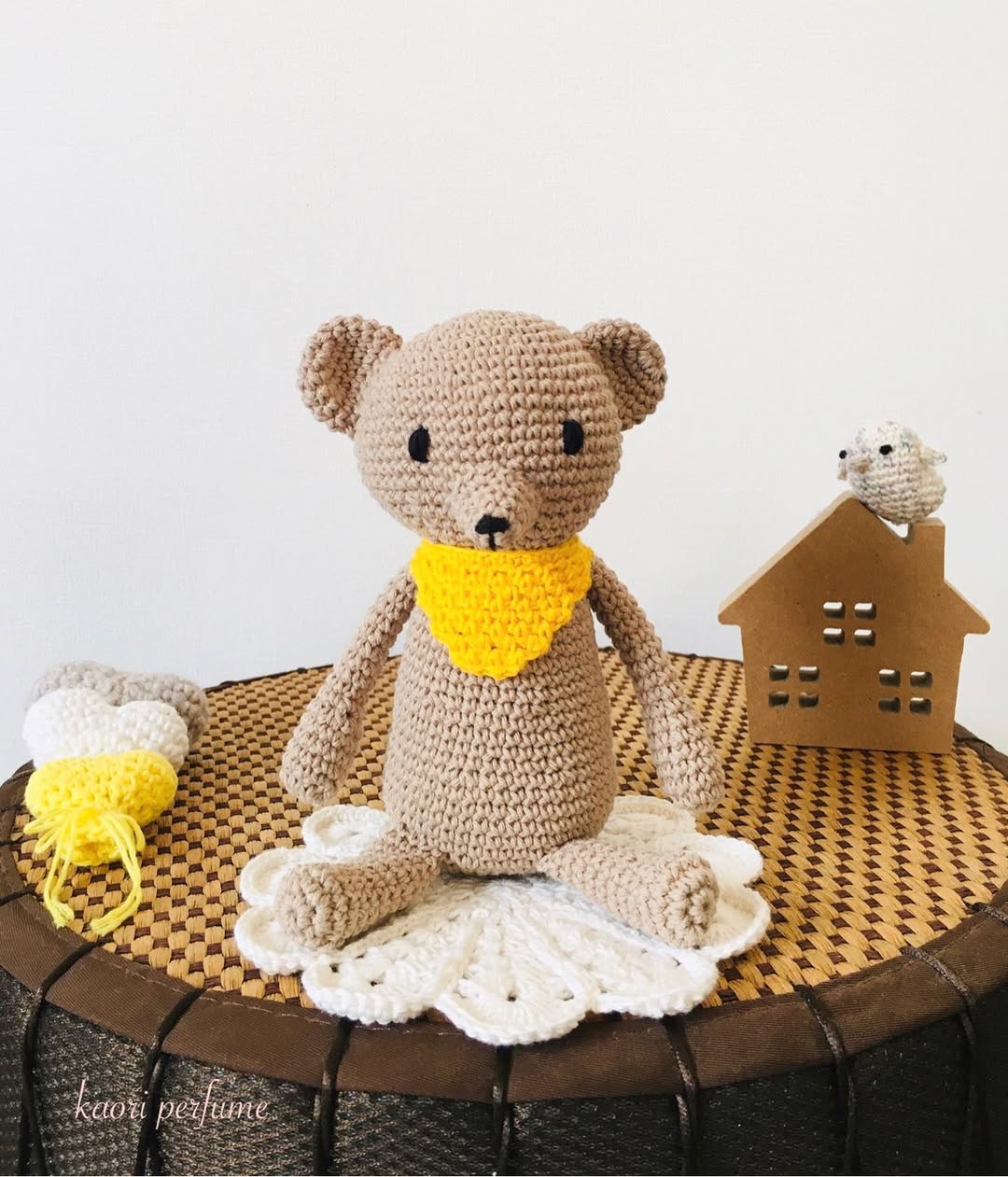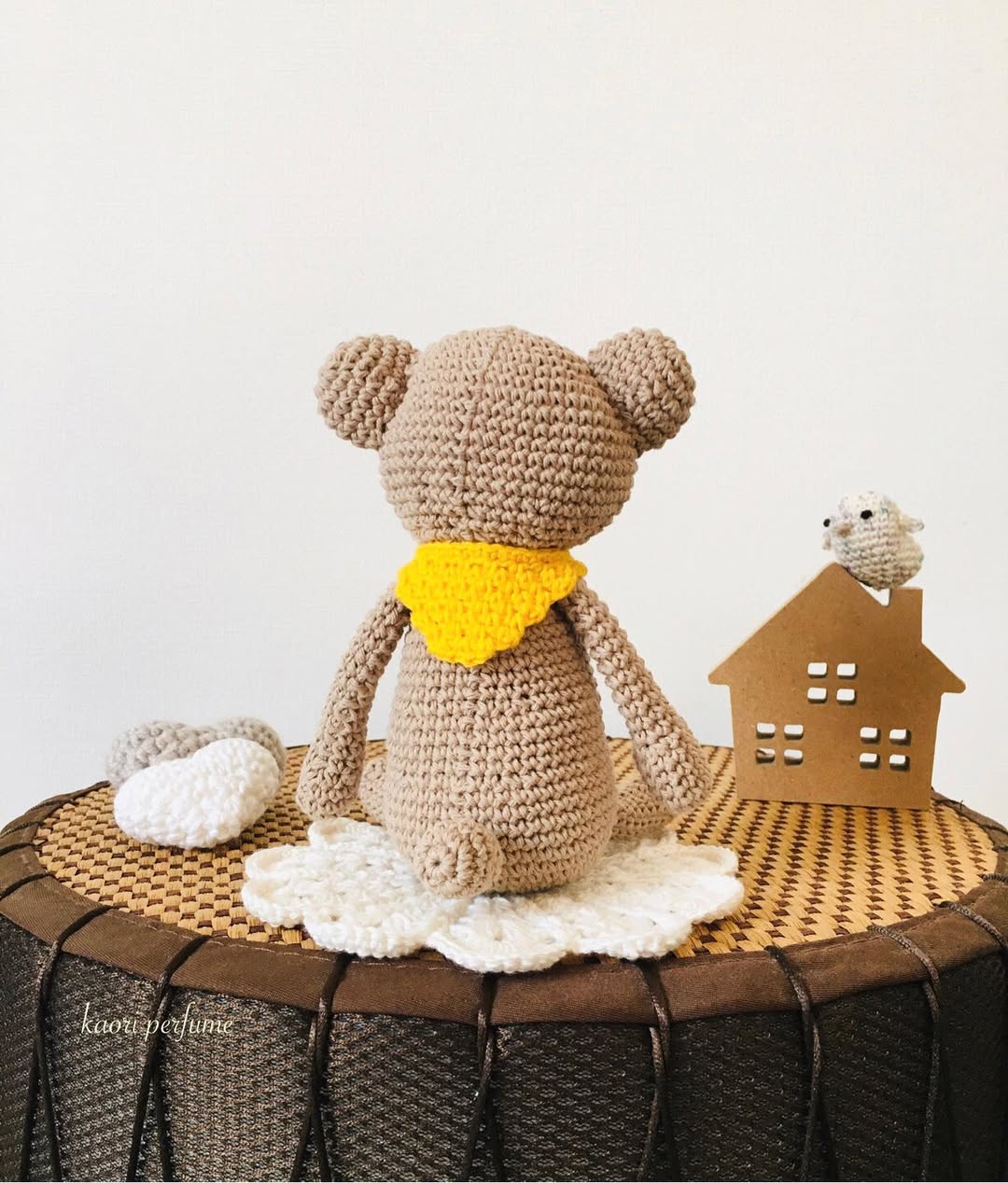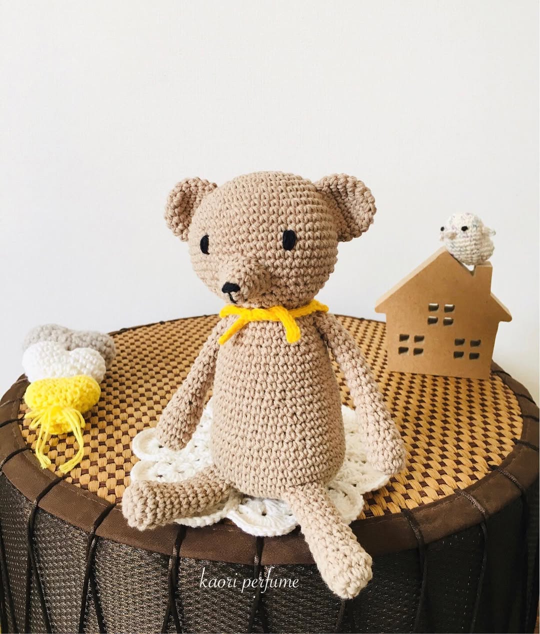 ダイソーの無料編み図を見ながら編んだくまさん。