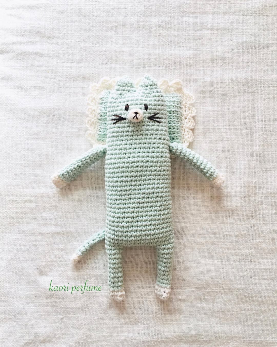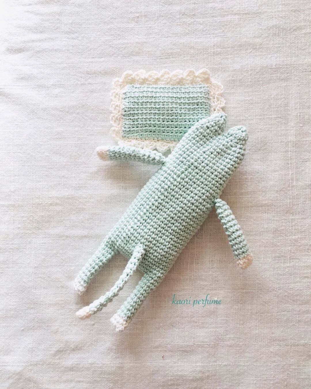 寝かせてみると頭が下がってしまうので枕を編みました。