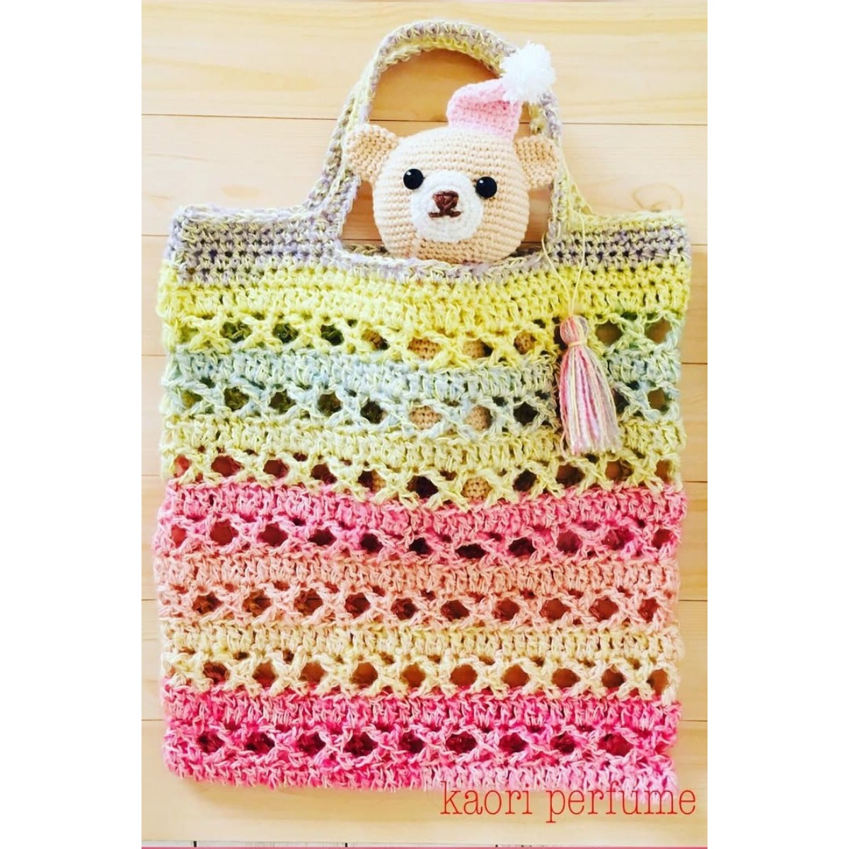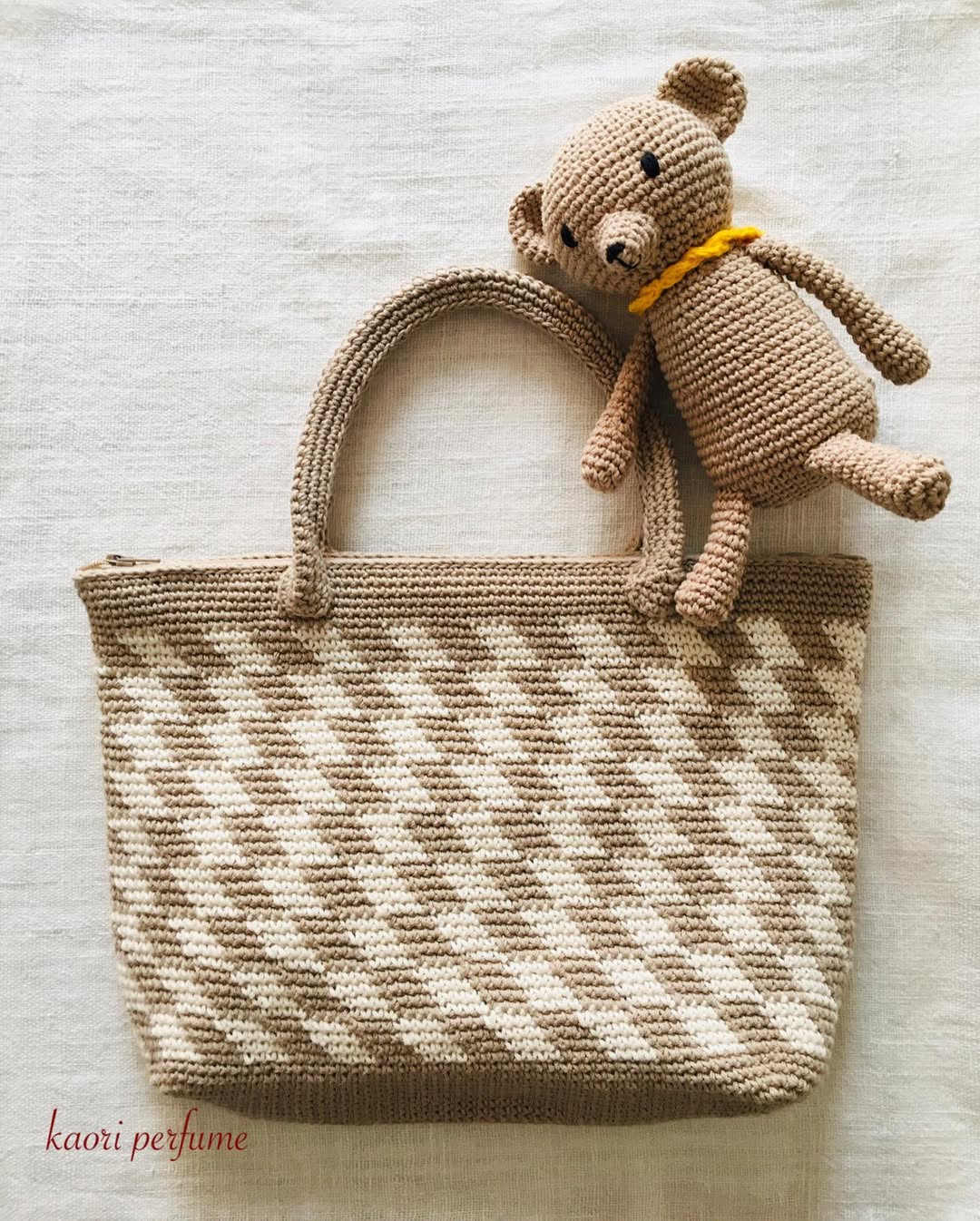 小さなマルシェバッグの中にくま🐻のあみぐるみを
