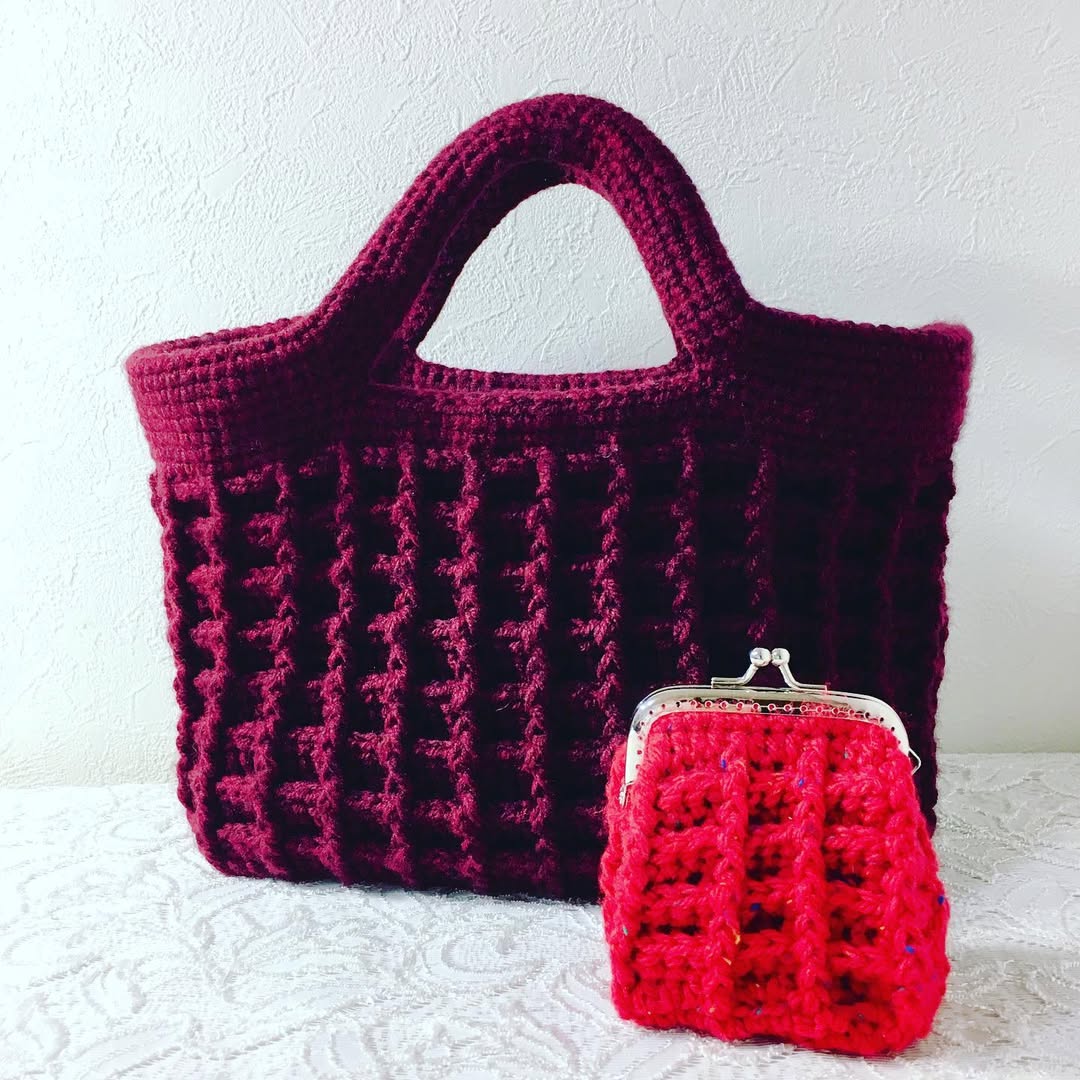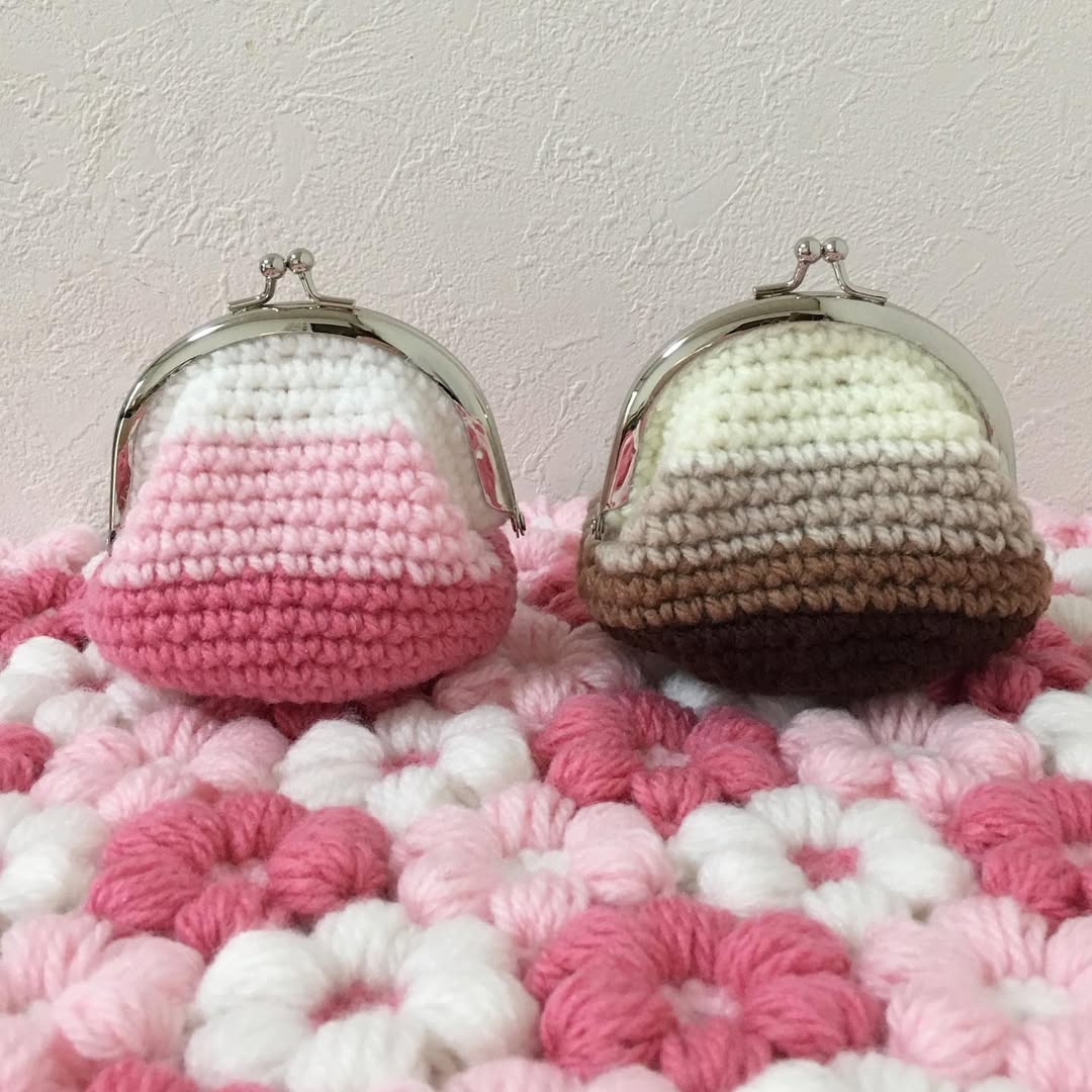 ワッフル編みのがま口財布👛