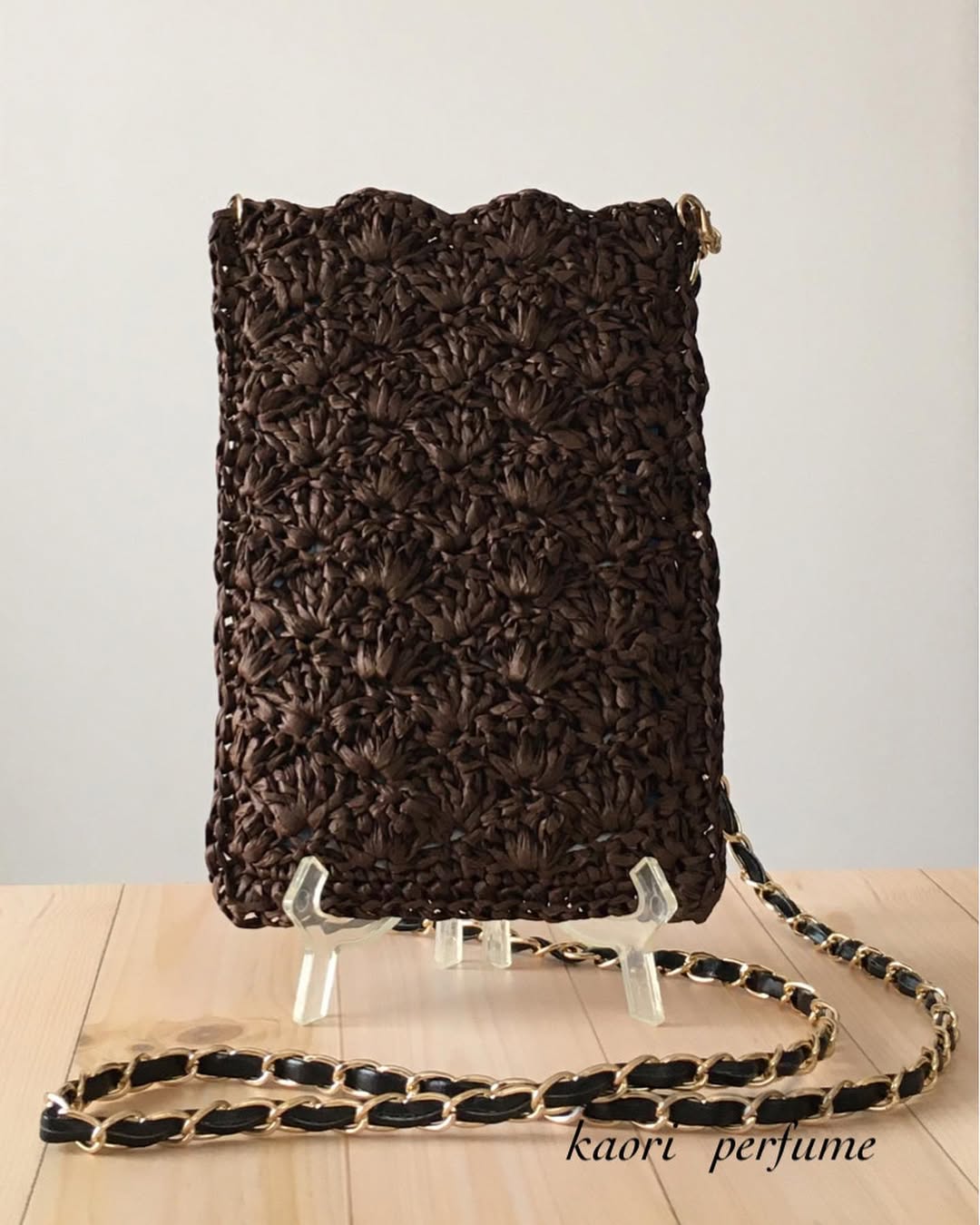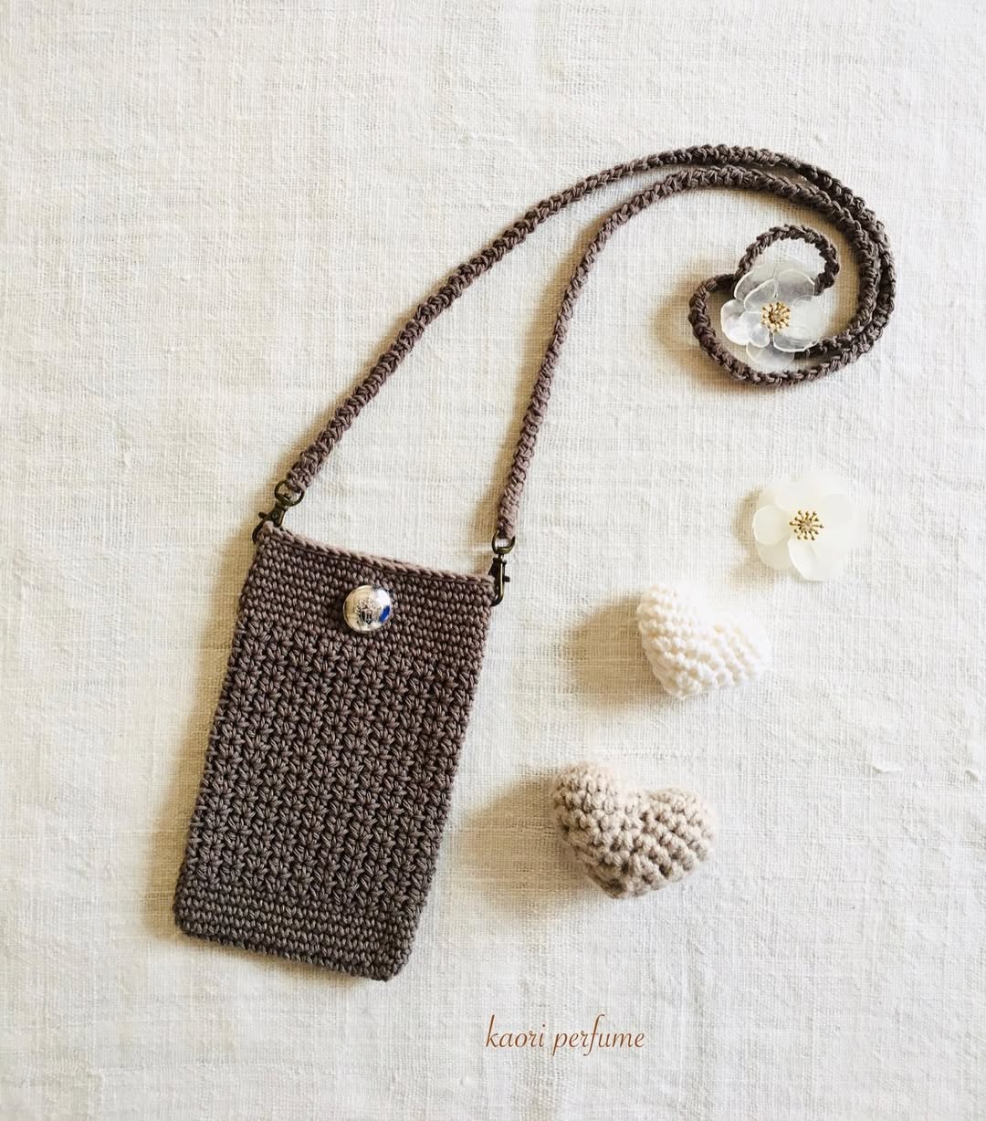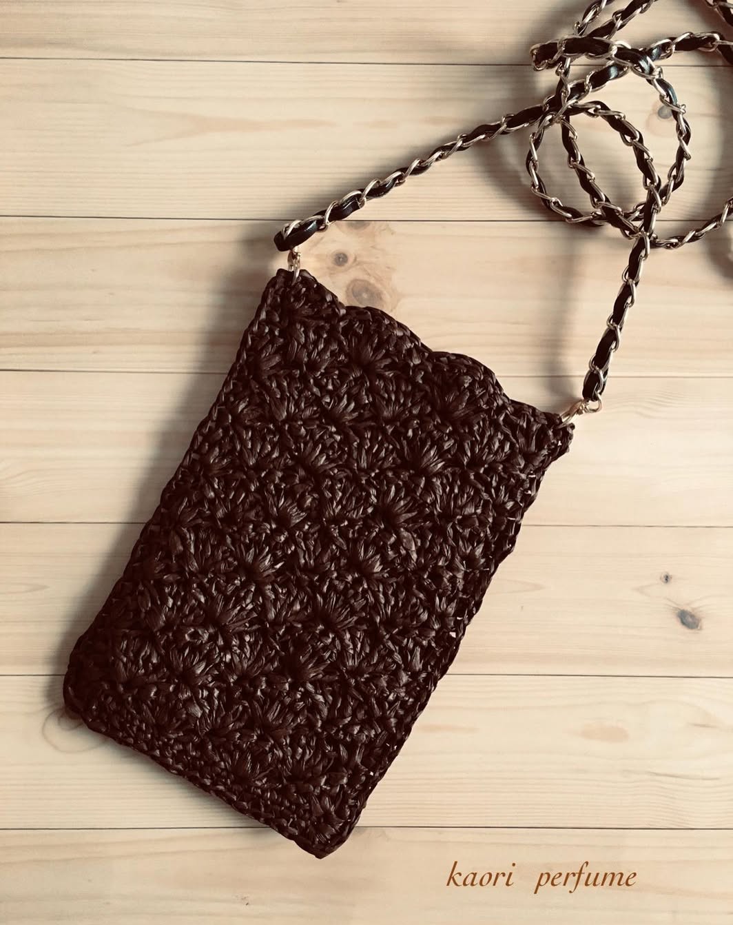 編み図や動画を見ないで適当に編んだポシェット。