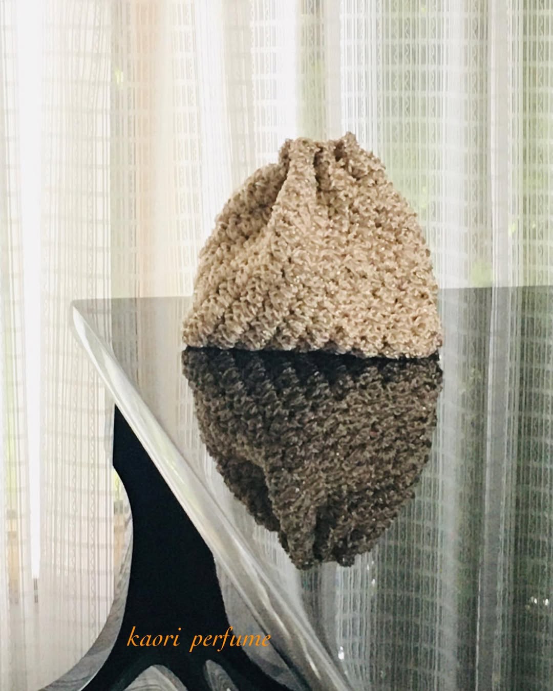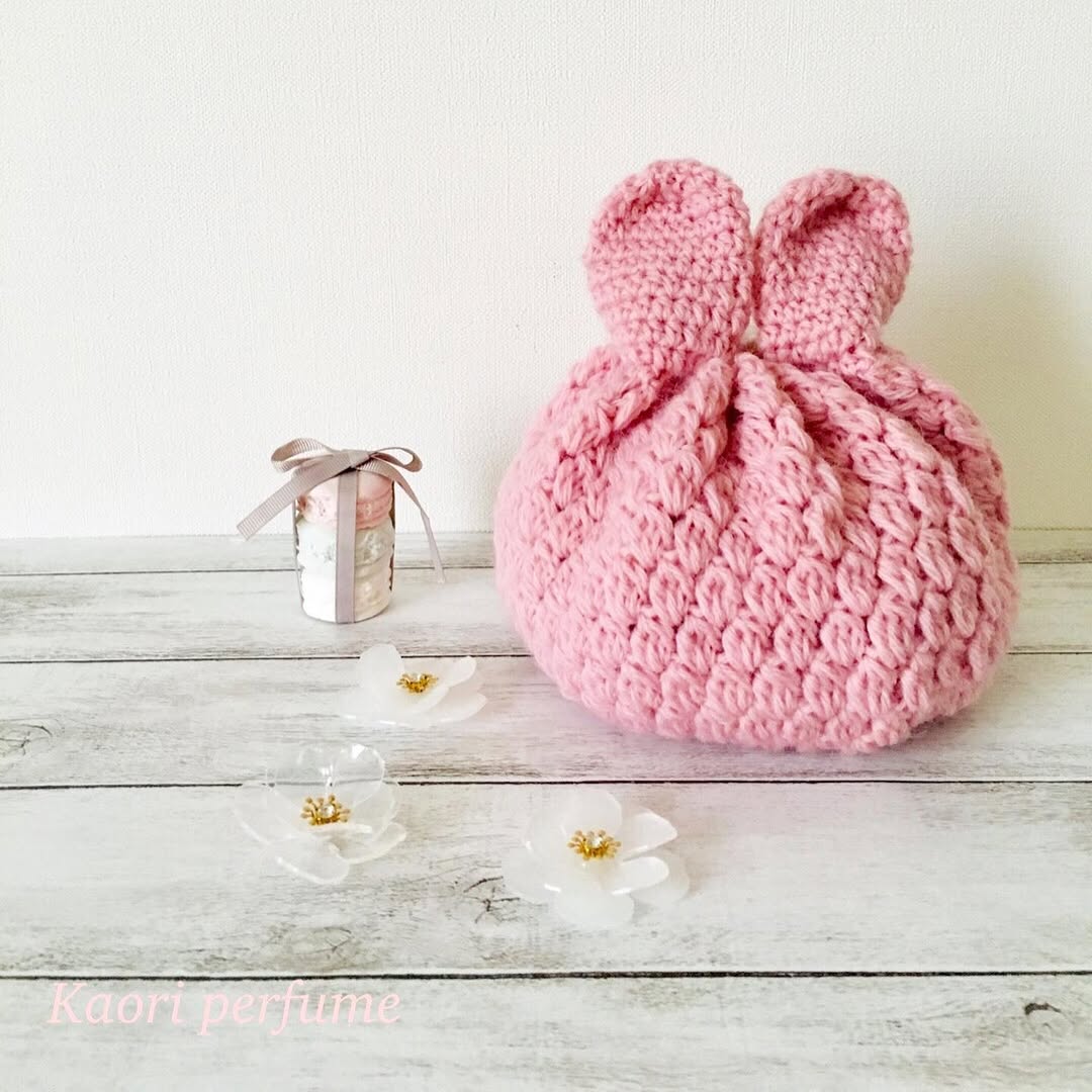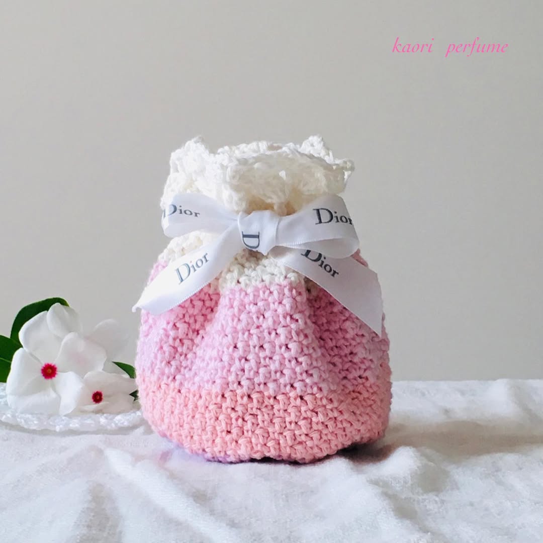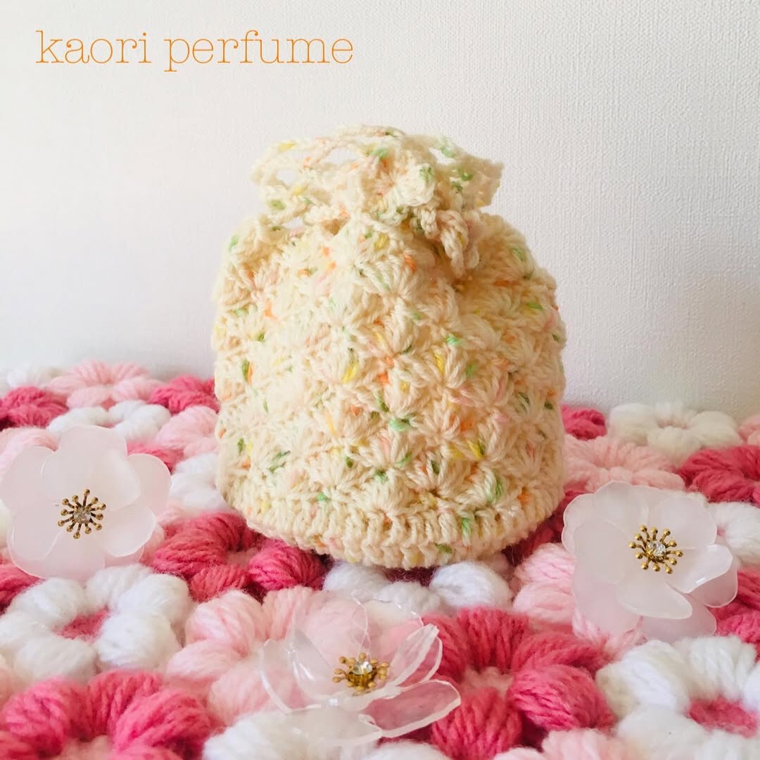巾着ポーチを編みました。