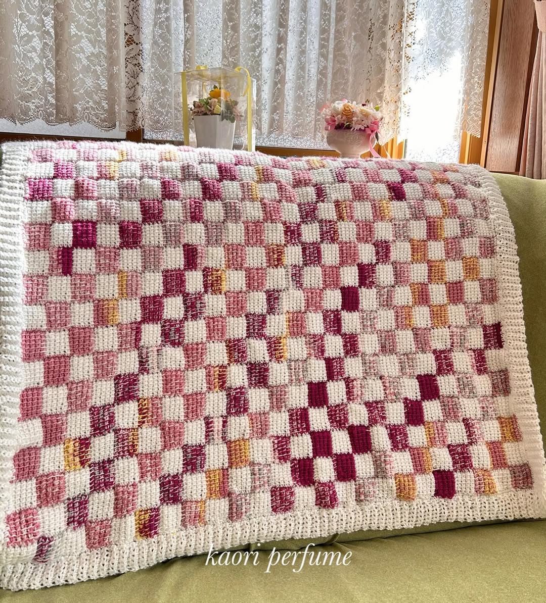 ☆パッチワーク風ダイアゴナルステッチブランケット☆
