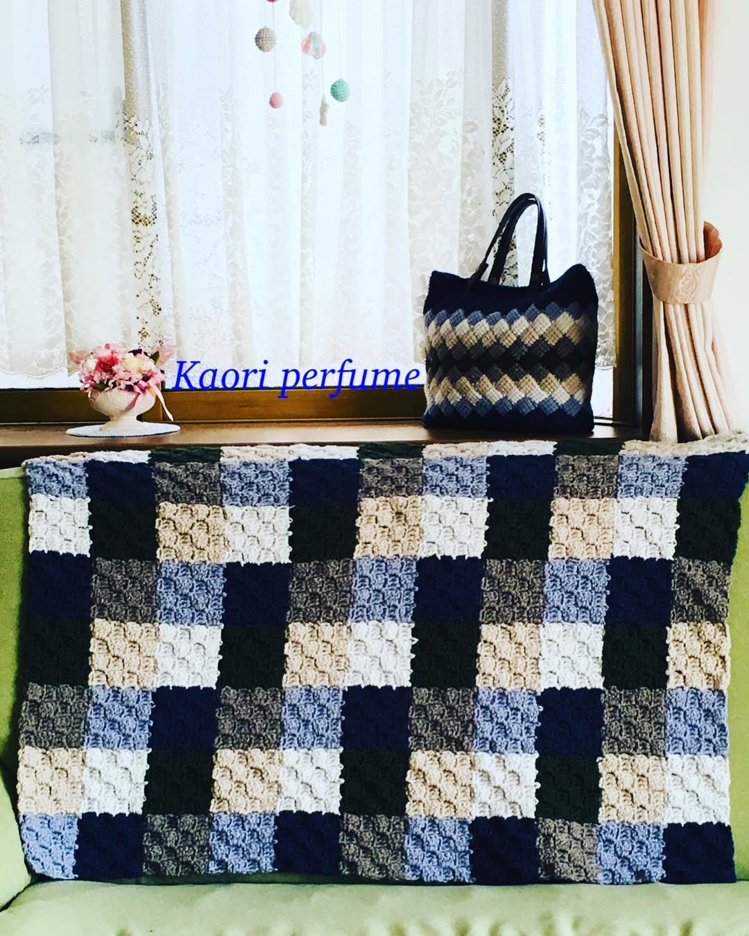コットン糸でブランケットを編みました。