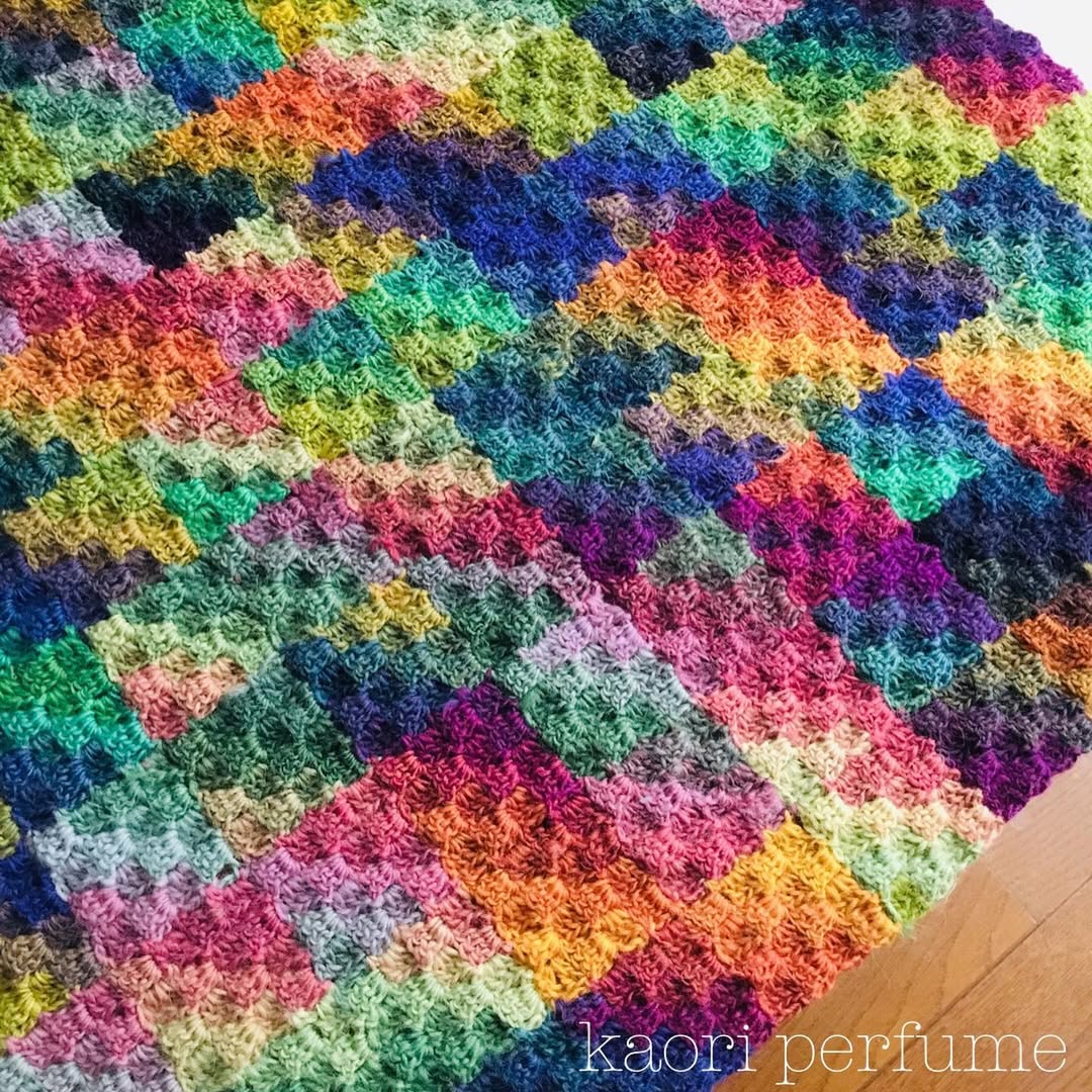 色合わせを楽しみながら121個のブロックを編み繋ぎました💕