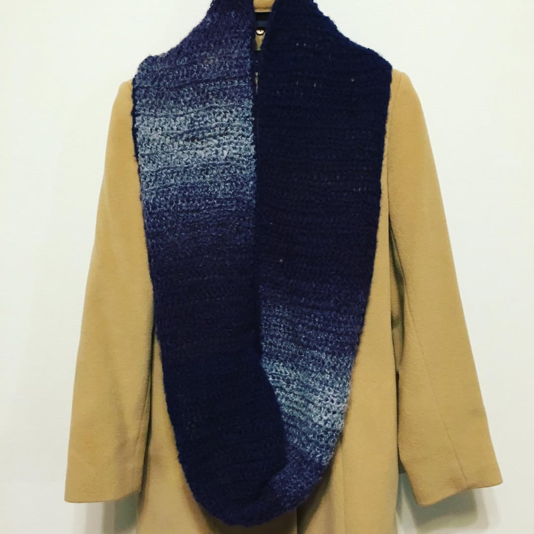 リフ編みのスヌードを解いてマフラーにしました。