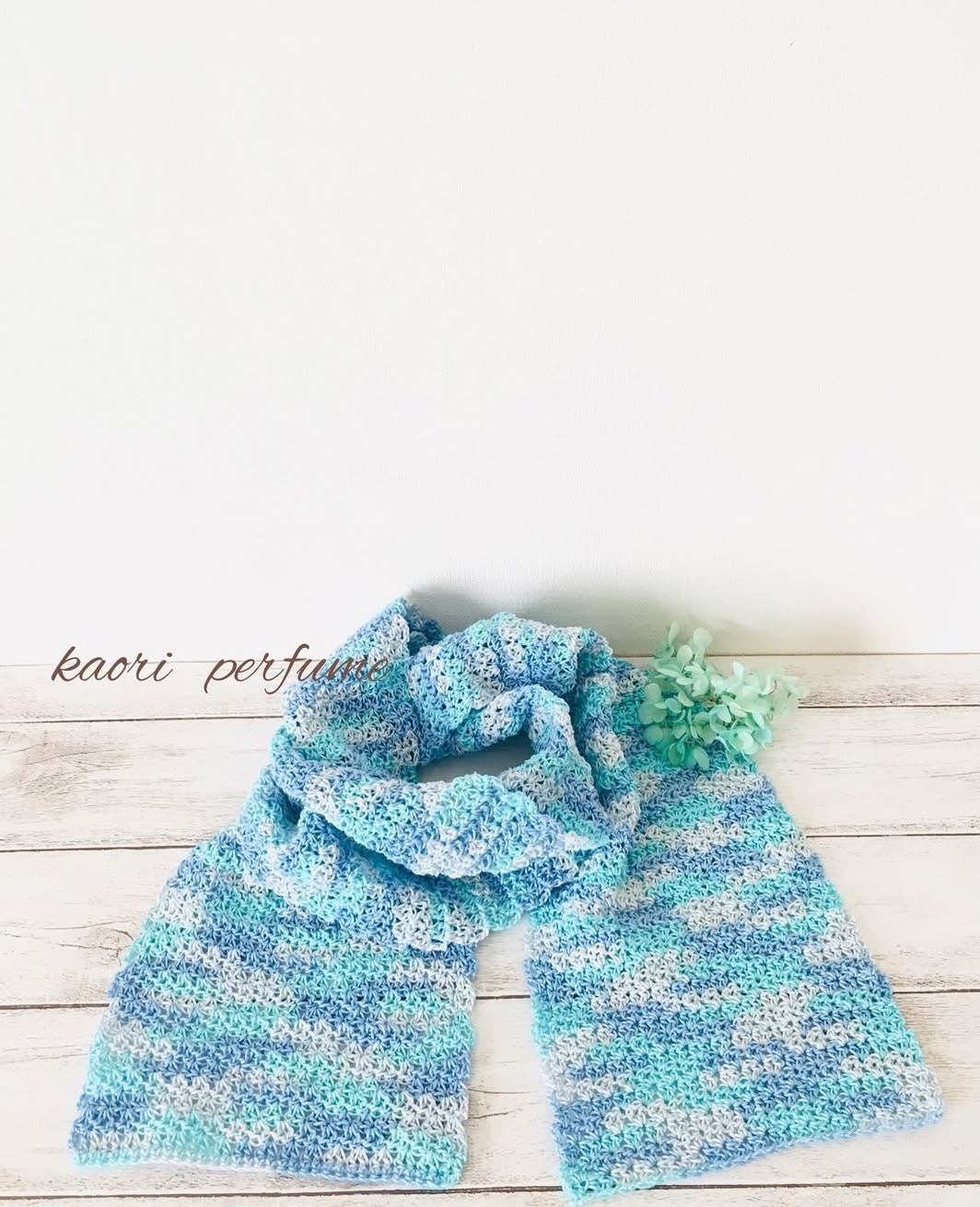 ブルーグリーンで編みました。